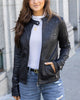 Retro gepolsterte Damenjacke - Schwarz mit kontrastierenden Details und Fellkragen