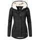 Schwarze Winterjacke mit Kapuze für Damen – langer Steppmantel