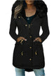 Schwarzer langer Wintermantel mit Kapuze für Damen – isolierend und bequem