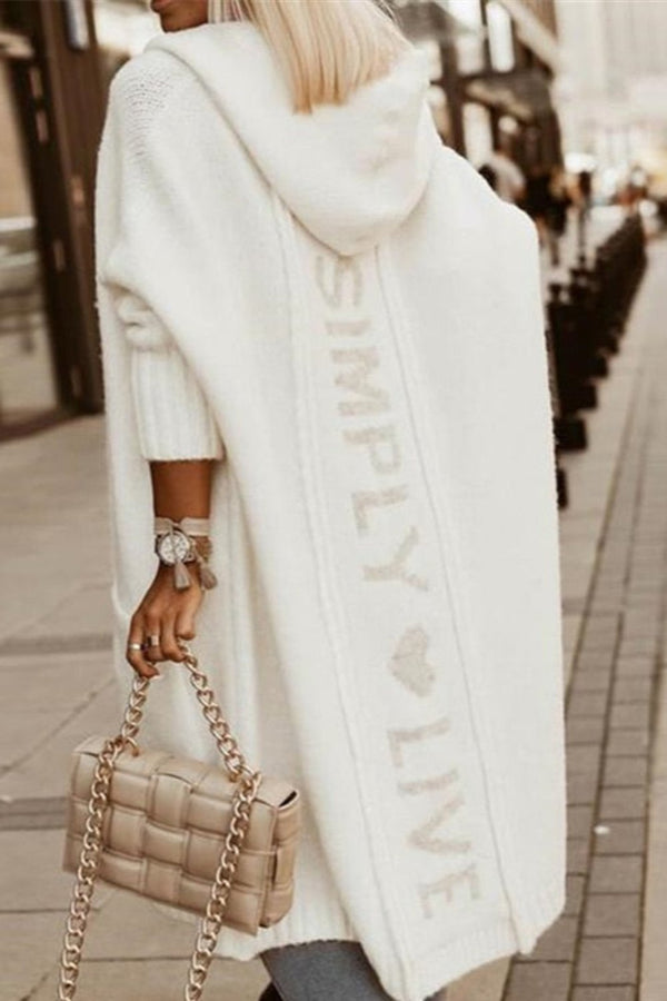 Gemütlicher strickmantel mit kapuze für damen – stilvoller langer wintermantel