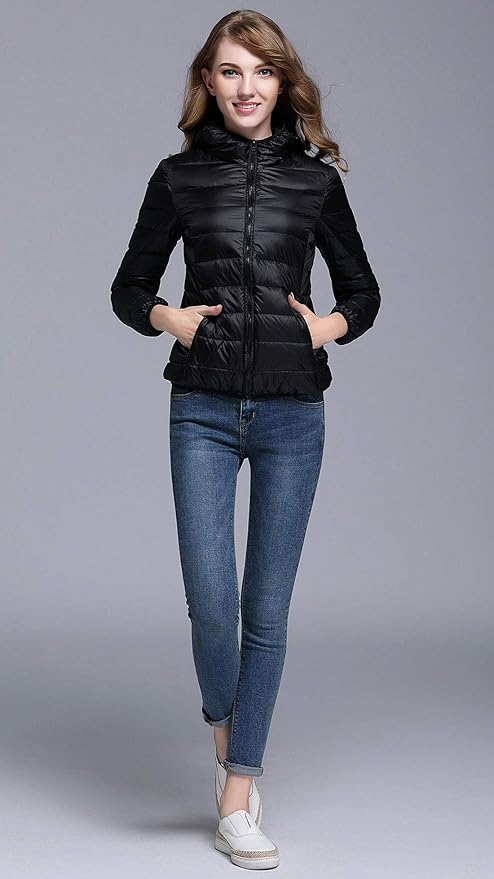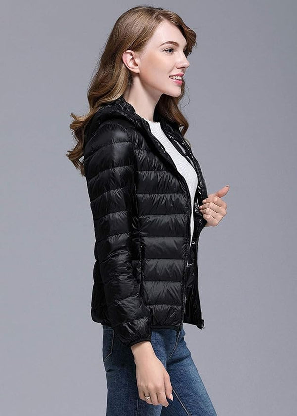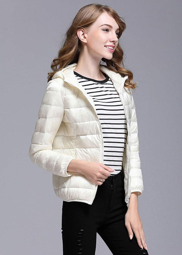 Leichte Winter-Daunenjacke mit Kapuze für Damen – faltbare Daunenjacke
